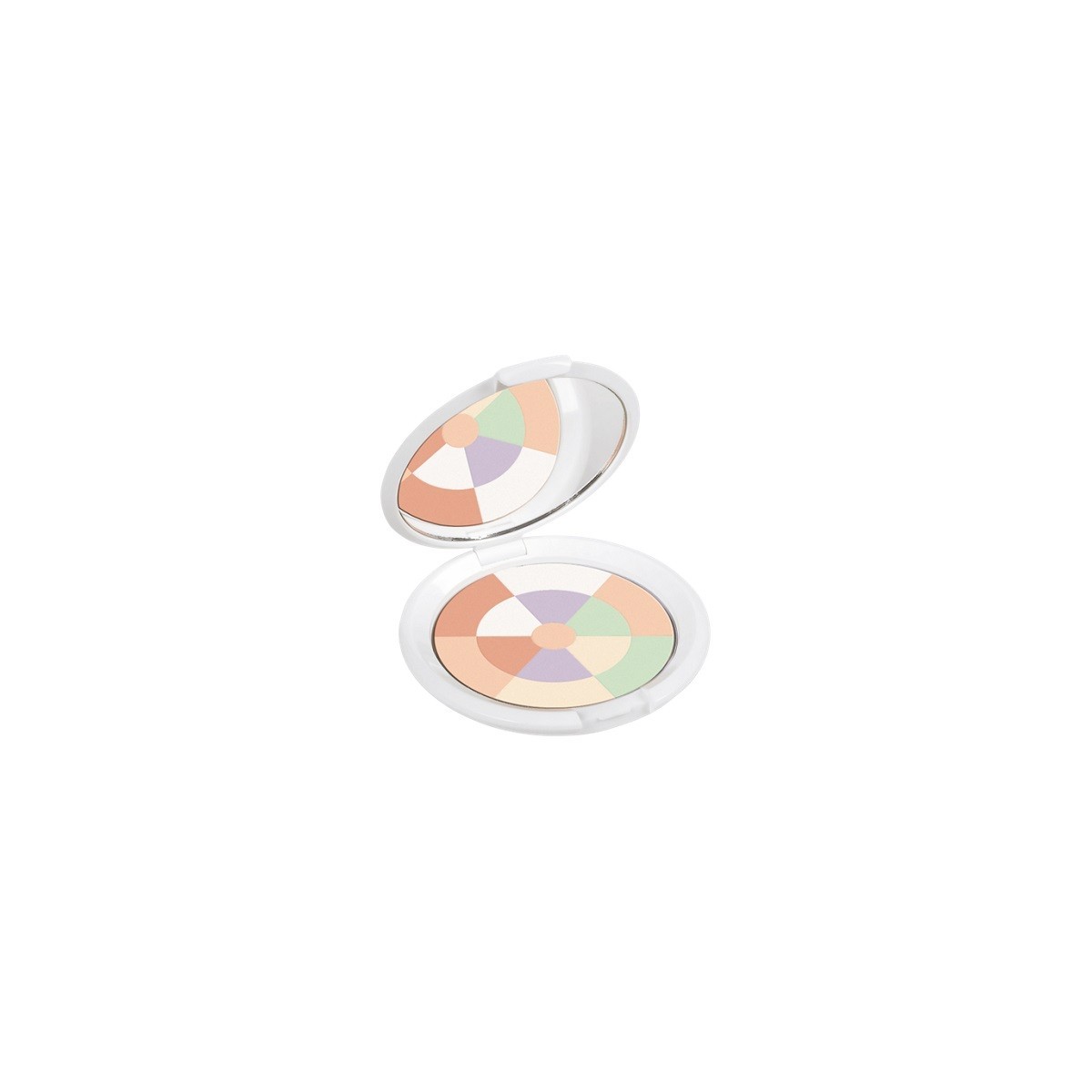 Este polvo compacto, con tonos correctivos (verde, morado blanco y beige) sutilmente irisados, unifica el tono de la piel y fija el maquillaje. Es ideal para un resultado de maquillaje luminoso y fresco o para esculpir el rostro acentuando volúmenes.