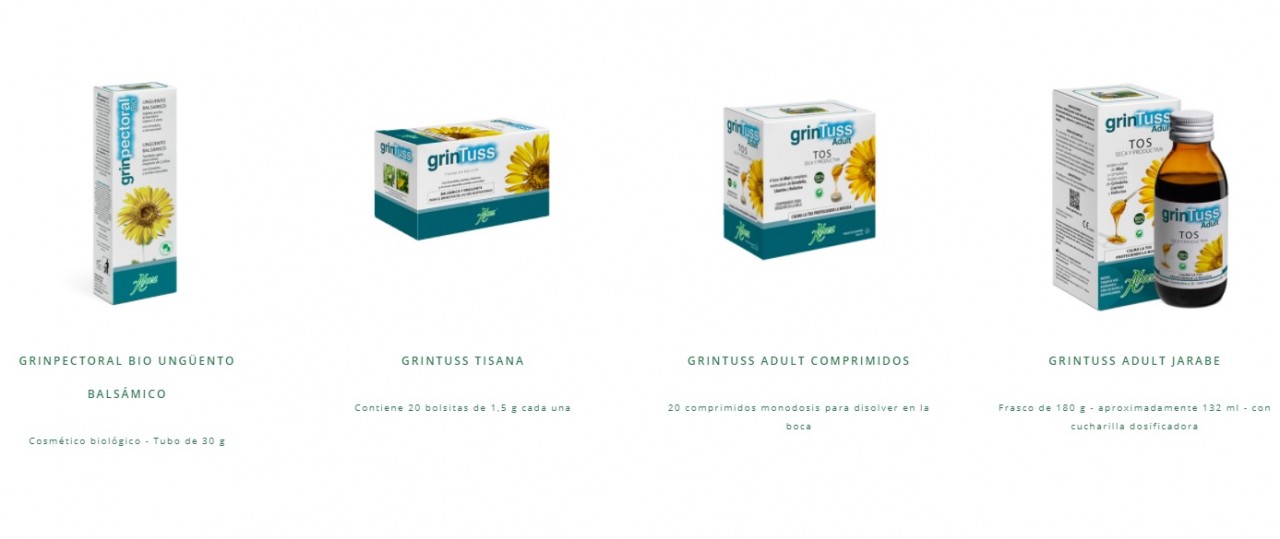 Grintuss es un producto natural que modula la tos sin suprimirla y que actúa protegiendo la mucosa, calmando la irritación y facilitando la eliminación del moco.