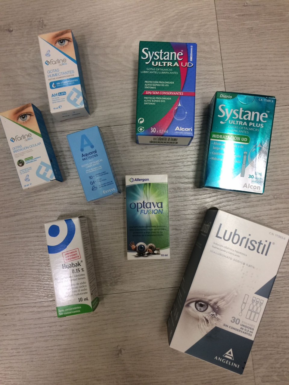 1. Lagrimas artificiales: es la base del tratamiento de esta patología. Hoy día existen infinidad de lagrimas artificiales en la farmacia. Se trata de productos que tienen una composición similar a una lágrima. Normalmente están formuladas con ácido hialurónico y otras sustancias que lo que hacen es retener la humedad del ojo. Es normal que se tengan que probar varios productos hasta dar con el adecuado.