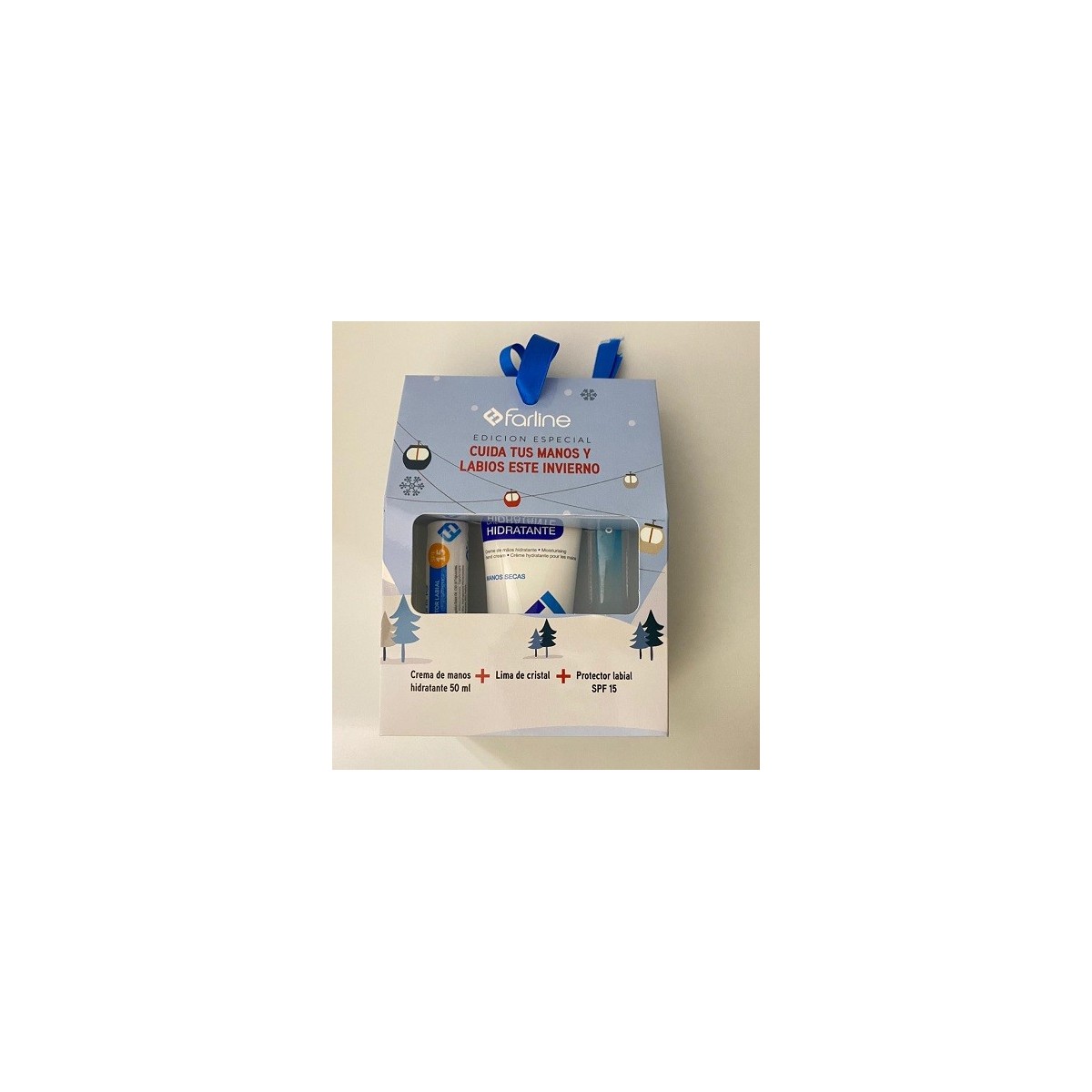 Este pack contiene: - 1 ud de FARLINE CREMA DE MANOS HIDRATANTE 50ML - 1 ud de LIMA DE CRISTAL - 1 ud de FARLINE PROTECTOR LABIAL SPF 15