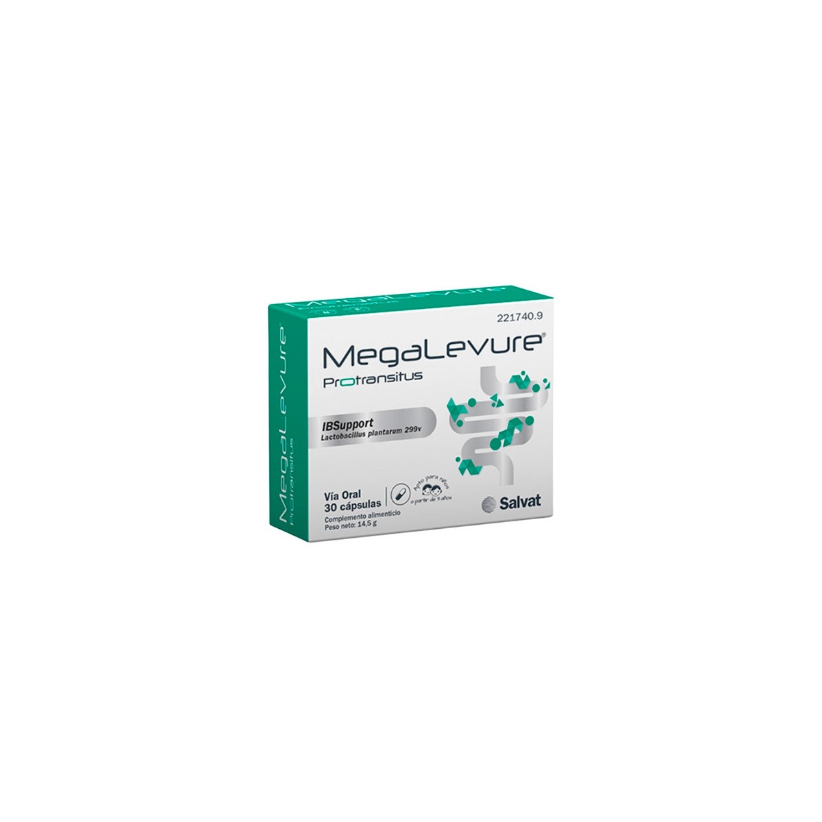 Megalevure Protransitus es un complemento alimenticio de alta especialización diseñado para recuperar y reforzar el bienestar digestivo, especialmente cuando el intestino presenta irritación. Su fórmula se basa en la potencia del probiótico Lactobacillus plantarum 299v, una cepa ampliamente estudiada y recomendada por las directrices de la Organización Mundial de Gastroenterología. Este producto está específicamente indicado para mejorar de forma global la función gastrointestinal y aliviar las molestias derivadas del Síndrome del Intestino Irritable (SII). Gracias a su triple acción, Megalevure Protransitus actúa directamente sobre el origen del malestar. Su probiótico es capaz de resistir el ácido gástrico y las sales biliares, logrando colonizar el intestino grueso de manera efectiva. Una vez allí, ayuda a reequilibrar la microbiota, reduce la microinflamación intestinal y refuerza la barrera defensiva contra bacterias patógenas. Es la solución ideal para quienes buscan reducir el dolor abdominal y la hinchazón, mejorando significativamente su calidad de vida diaria. Beneficios: Mejora de Síntomas del SII: Ayuda a reducir el dolor abdominal, la distensión y la irregularidad en el tránsito. Restauración de la Microbiota: Reequilibra la flora bacteriana intestinal favoreciendo la colonización de bacterias beneficiosas. Acción Antiinflamatoria: Ayuda a disminuir la producción de citoquinas proinflamatorias en el epitelio intestinal. Refuerzo de la Barrera Intestinal: Dificulta la adhesión de patógenos y mejora la función defensiva de la mucosa. Reducción de Gases: Su eficacia está asociada a una disminución notable de la hinchazón abdominal. Cepa de Alta Resistencia: El Lactobacillus plantarum 299v llega vivo al colon para garantizar su eficacia. Modulación de la Inmunidad: Mejora la respuesta inmune local a nivel del tracto digestivo. Mejora del Tránsito: Contribuye a normalizar las deposiciones en intestinos sensibles e irritados. Modo empleo / consejos Tomar 1-2 cápsulas al día de Megalevure Protransitus 30 Cápsulas durante o después de las comidas, durante 4 semanas. Se puede repetir la toma si es necesario. Composición Almidón de patata (Solanum tuberosum L,); componente de la cápsula: hidroxipropilmetilcelulosa; Lactobacillus plantarum 299v (10.000 millones de bacterias vivas); antiglomerante: estearato de magnesio.