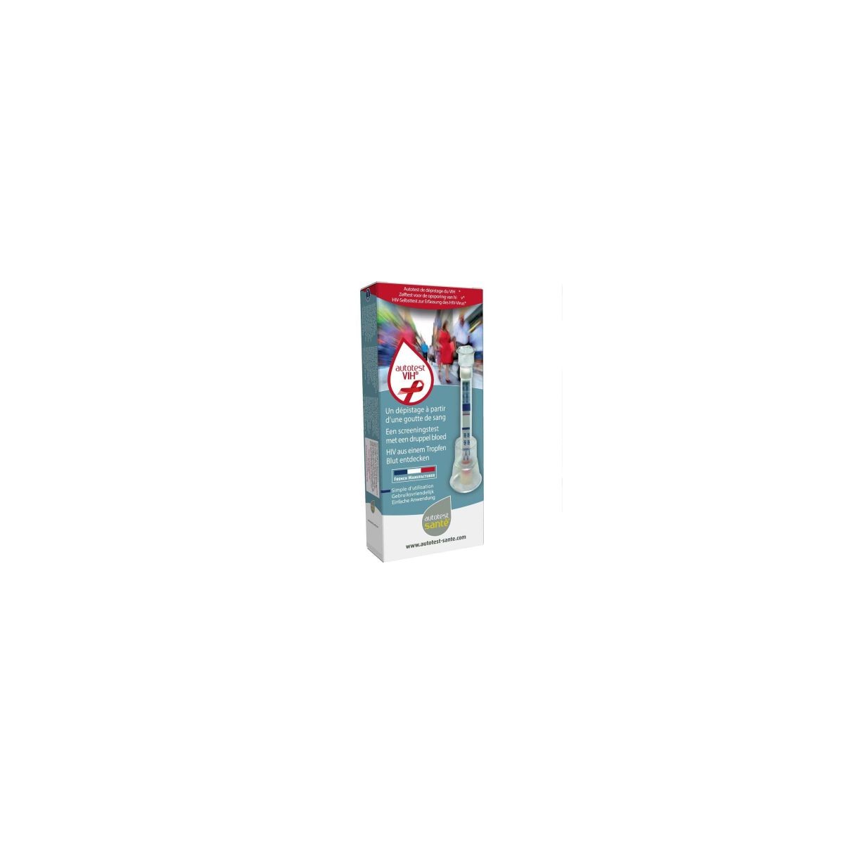 Test de autodiagnóstico para la detección del VIH, cuya infección se haya producido hace más de 3 meses. El kit de autodiagnóstico contiene los siguientes elementos: - Envase cerrado con los siguientes elementos: * Dispositivo de prueba, que incluye un tapón con solución amortiguadora. * Lanceta. * Tirita. - Soporte. - Toallita desinfectante. - Compresa.